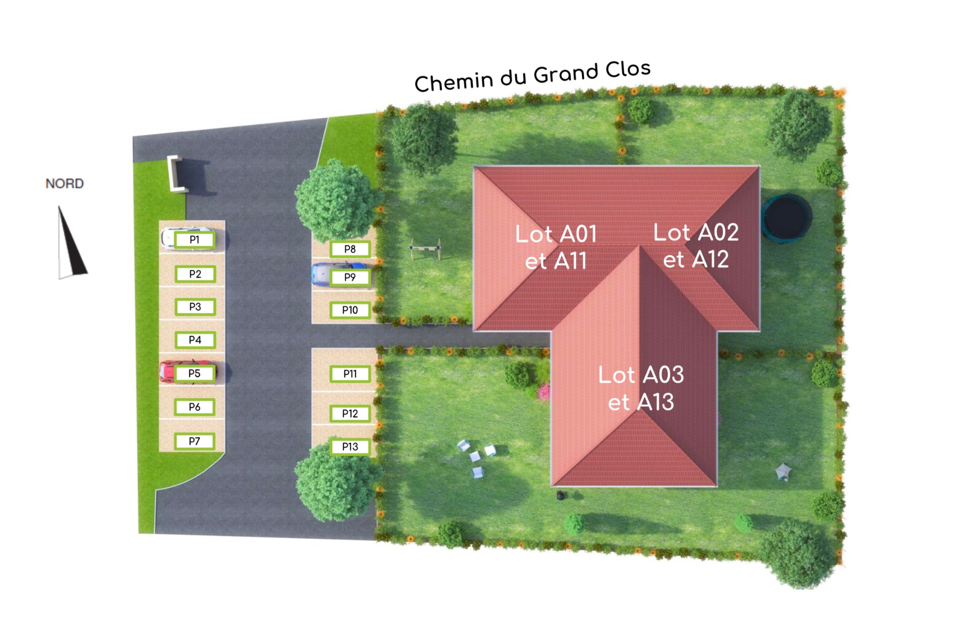 Située au calme, chemin du Grand Clos, elle est composée uniquement de 6 appartements 3 pièces avec terrasses et jardins.